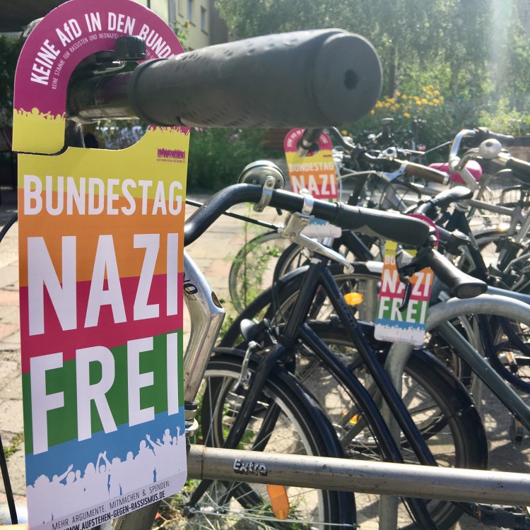 Die neuen “Bundestag Nazifrei”-Hänger eignen sich prima für Haltestangen in der U- oder S-Bahn, für Fahrradlenker vor der Mensa oder die Türklinken deiner Nachbarn. Hier kannst du dir welche bestellen: Bestellen