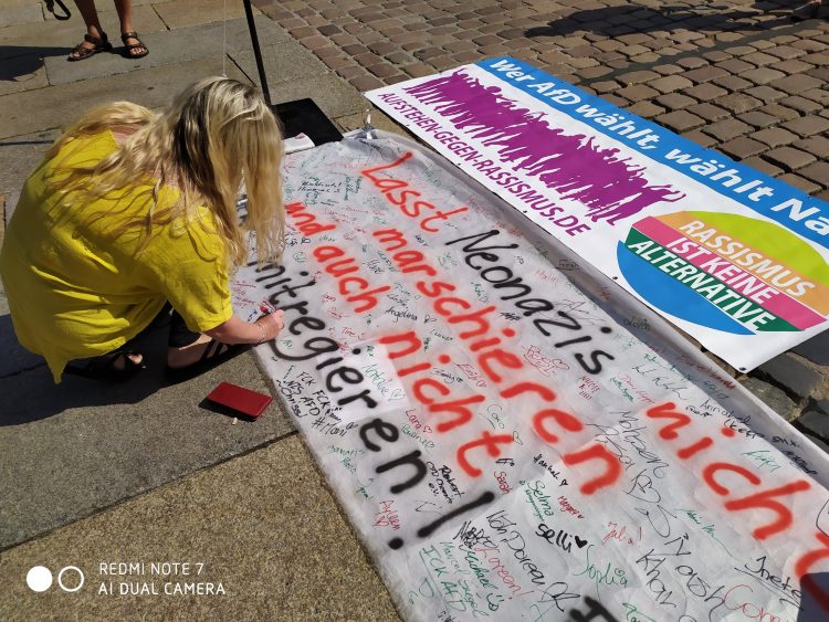 Das Bündnis „Aufstehen gegen Rassismus“ beobachtet seit Monaten, wie insbesondere die Union die Zusammenarbeit mit der AfD in der Lokalpolitik immer wieder pflegt. Wo CDU und AfD kooperieren und beispielsweise die Besetzung von Ausschüssen gemeinsam organisieren, bangen Institutionen, die sich der Förderung einer lebendigen, demokratischen Zivilgesellschaft widmen, um ihre Finanzierung. „Es gilt die sächsische Zivilgesellschaft in ihrem Einsatz für Demokratie und Menschenrechte zu unterstützen und nicht, sie dabei, wie zuletzt immer öfter geschehen, zu behindern oder gar anzugreifen“, meint Gabi Engelhardt, Vertreterin der „Aufstehen gegen Rassismus“-Regionalgruppe in Chemnitz: „Für uns beginnt heute das Programm ‚AfD zurückdrängen‘.“