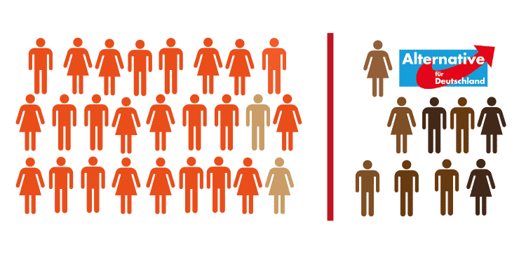 Genau das gerät gerade ins Wanken: Die AfD greift weit aus und reißt Tabus ein. Sie setzt immer neue Themen, die andere aufgreifen. Vor allem aber ist die Rote Linie der Ächtung und Isolation durchbrochen. Rassistische Positionen werden von der AfD offen vertreten und immer mehr Menschen bekennen sich zu diesen.