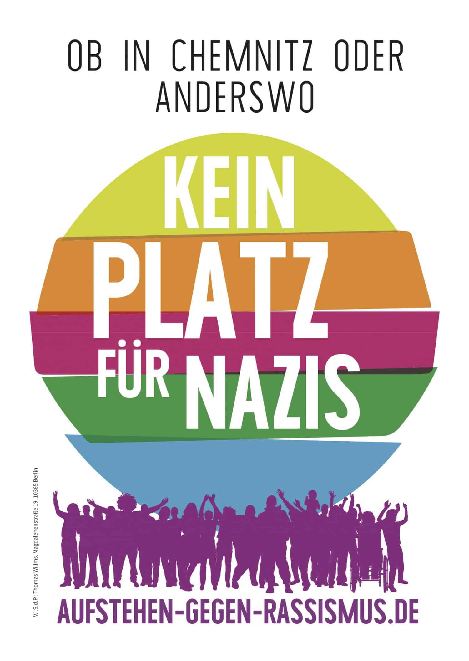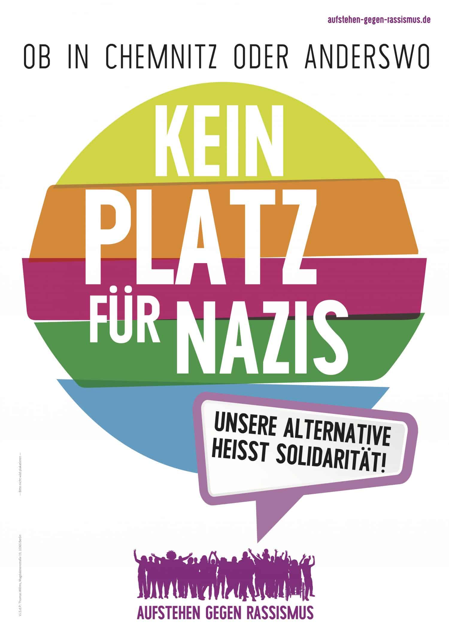 - “Kein Platz für Nazis” (neues Motiv, im Webshop auch als Demoplakat auf Pappe)