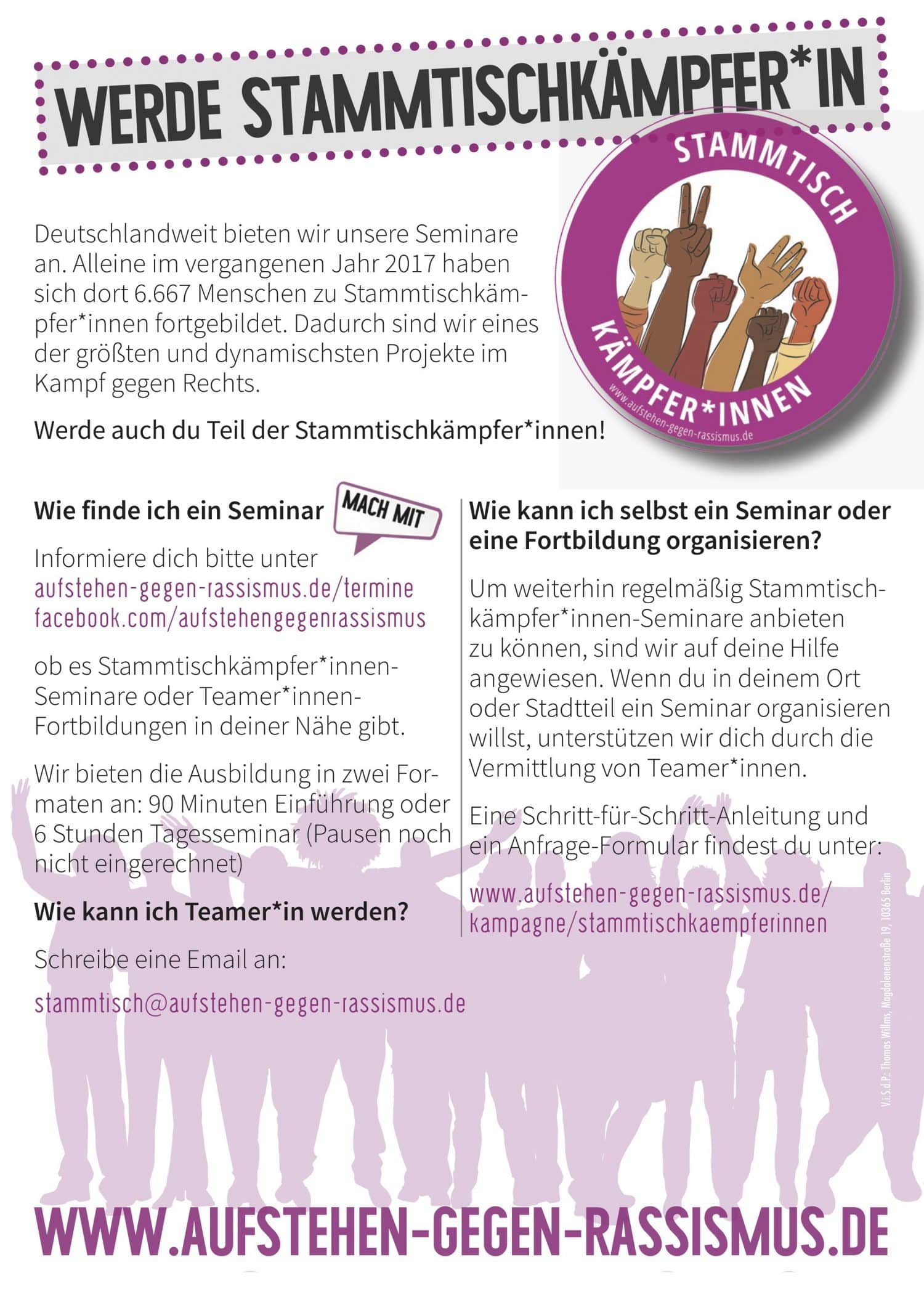 - Flyer (DIN A6, doppelseitig) “Werde Stammtischkämpfer*in“