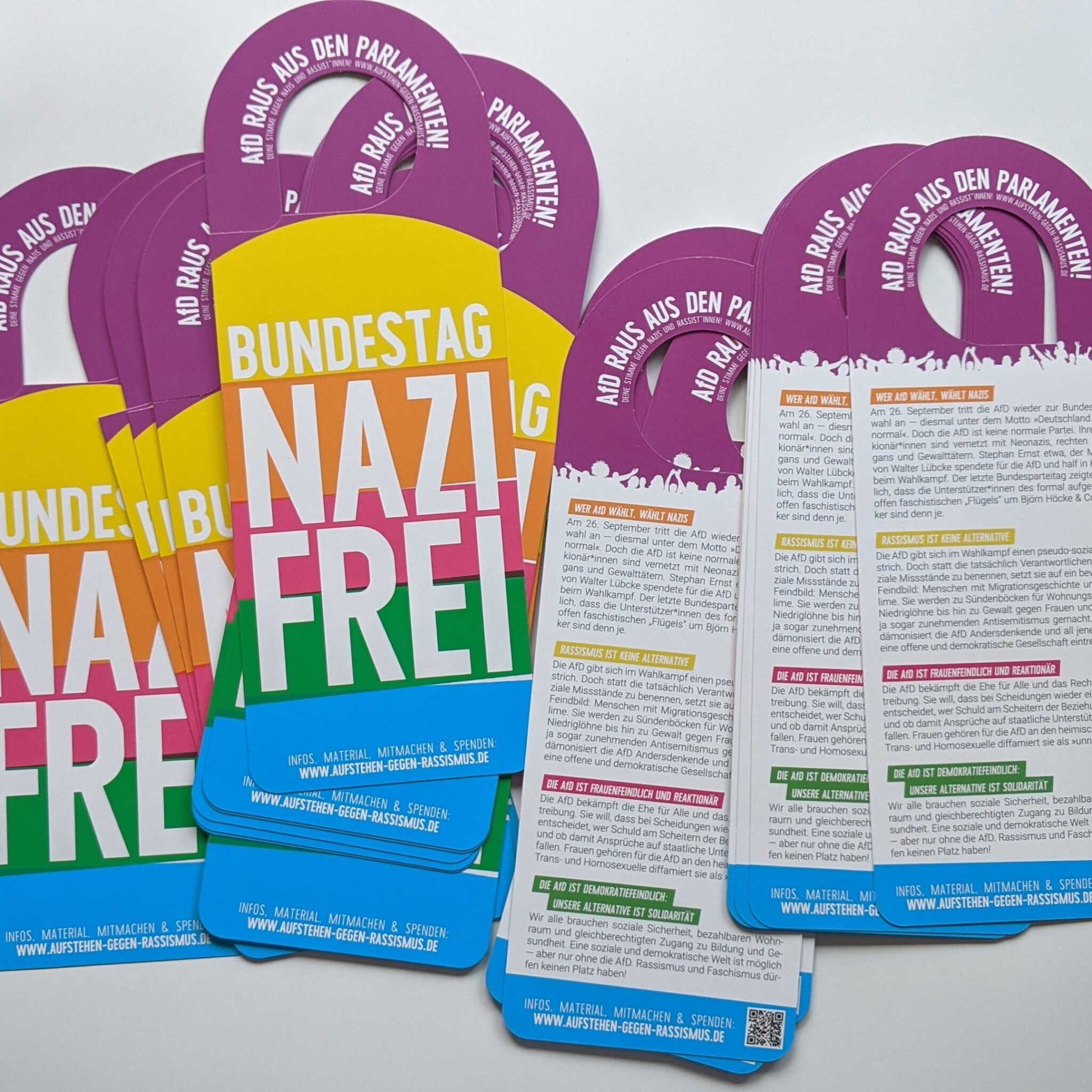- Türhänger “Bundestag nazifrei” für Türklinken, Busse und Bahnen etc.