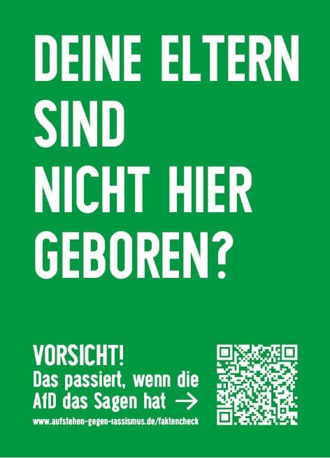 - “Wer AfD wählt, wählt Nazis – Deine Stimme gegen die AfD“