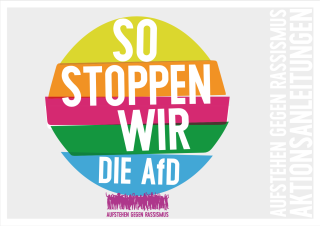 Wir wollen diese Partei zurückdrängen und letztlich zur Auflösung zwingen. Dafür steht Aufstehen gegen Rassismus – ein bundesweites Bündnis, das Proteste organisiert, sich in Wahlkämpfe einmischt und über die AfD aufklärt.